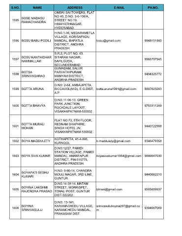1596 BOSU BABU PODILI MANDAL, BAPATLA bosu@gmail.com 9948151860