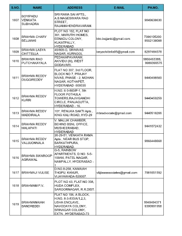 S.NO. NAME ADDRESS E-MAIL PH.NO.