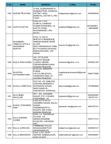 S.NO. NAME ADDRESS E-MAIL PH.NO.