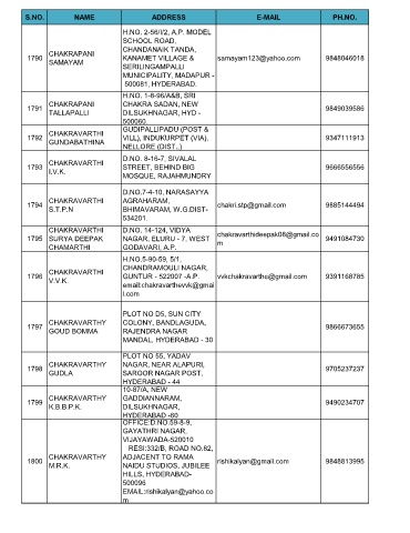 S.NO. NAME ADDRESS E-MAIL PH.NO.