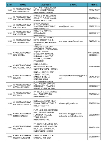 S.NO. NAME ADDRESS E-MAIL PH.NO.