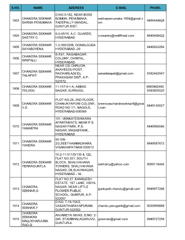 S.NO. NAME ADDRESS E-MAIL PH.NO.