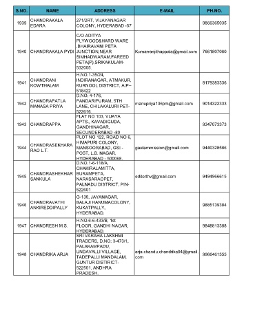 S.NO. NAME ADDRESS E-MAIL PH.NO.