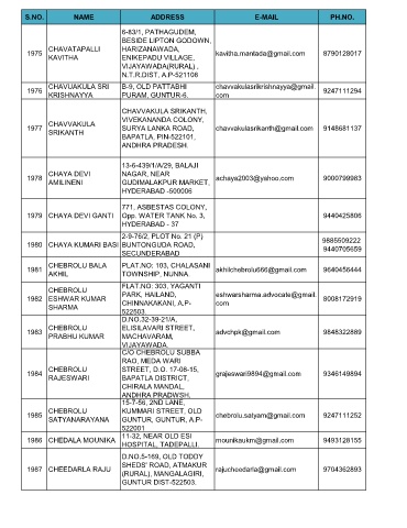 S.NO. NAME ADDRESS E-MAIL PH.NO.