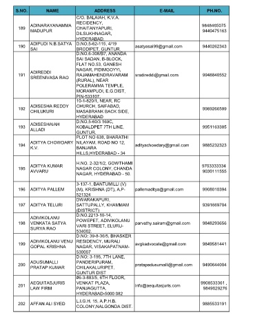 S.NO. NAME ADDRESS E-MAIL PH.NO.