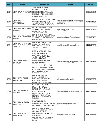 2091 SUBBA RAO THOTA, sudhir_rajani@hotmail.com 9441448909