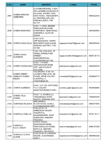 2101 CHINTA PADMA RAO padmaraococ@gmail.com 9949294078