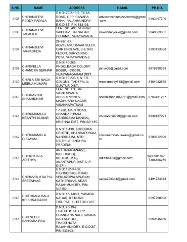 S.NO. NAME ADDRESS E-MAIL PH.NO.