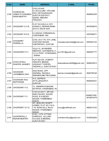 2190 CHOWDARY S.V.S. 118, ROAD NO 2, RAJIV svscy@rediffmail.com 9866010103