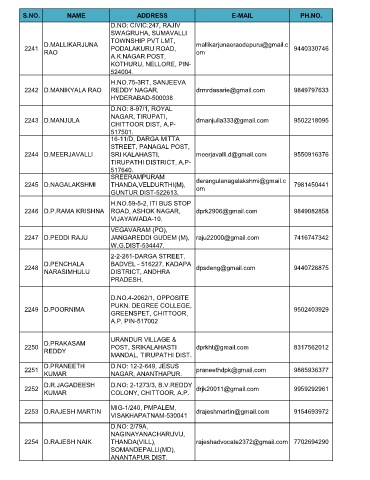 2245 D.NAGALAKSHMI THANDA,VELDURTHI(M), derangulanagalakshmi@gmail.c 7981450441