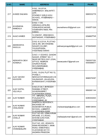 S.NO. NAME ADDRESS E-MAIL PH.NO.