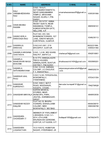 S.NO. NAME ADDRESS E-MAIL PH.NO.
