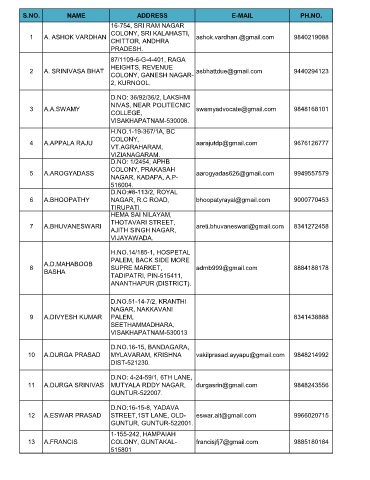 S.NO. NAME ADDRESS E-MAIL PH.NO.
