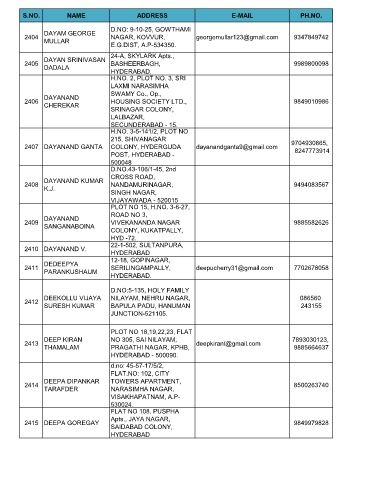 S.NO. NAME ADDRESS E-MAIL PH.NO.