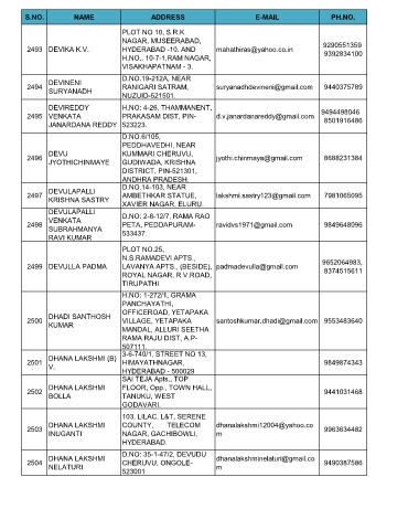 2493 DEVIKA K.V. HYDERABAD -10. AND mahathiras@yahoo.co.in 9290551359