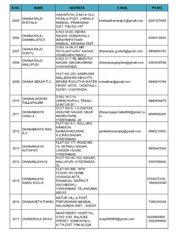 S.NO. NAME ADDRESS E-MAIL PH.NO.