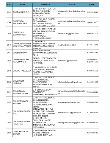 S.NO. NAME ADDRESS E-MAIL PH.NO.