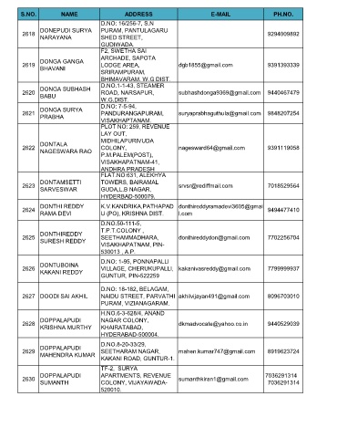 S.NO. NAME ADDRESS E-MAIL PH.NO.