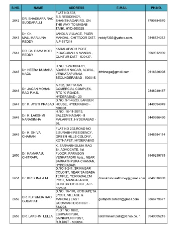 2653 DR. LAKSHMI LELLA lakshmivempalli@yahoo.co.in 9949005215