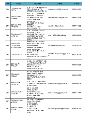 2863 PETA, DASARIVARI eswareswar3844@yahoo.com 9866610928