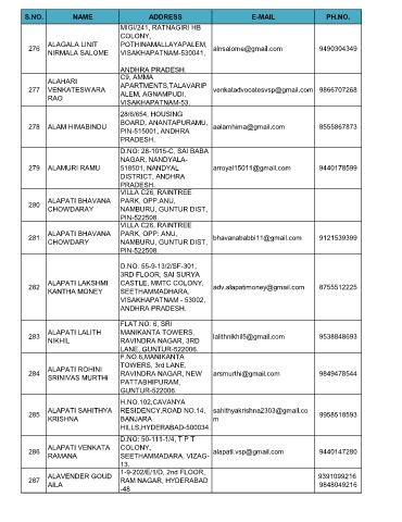 279 ALAMURI RAMU 518501, NANDYAL arroyal15011@gmail.com 9440178599