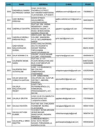 3032 GADIRAJU GAYATRI KRISHNA NAGAR, J.P. gayathri nagar@gmail.com 8790060607