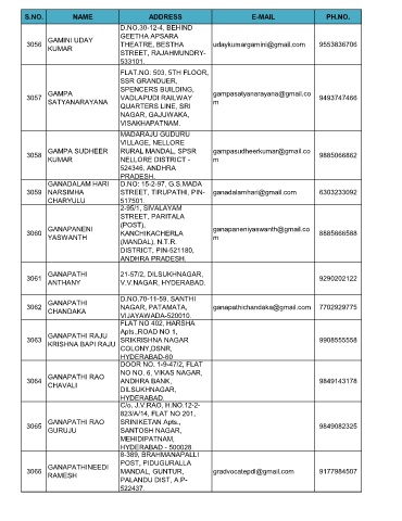 S.NO. NAME ADDRESS E-MAIL PH.NO.