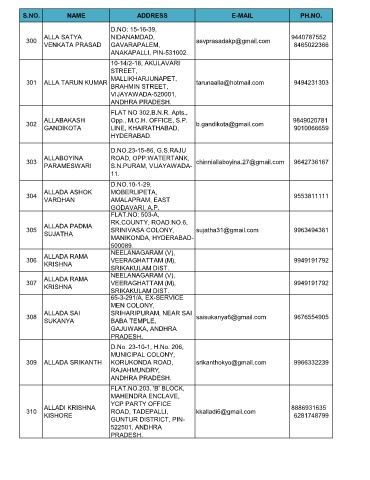 S.NO. NAME ADDRESS E-MAIL PH.NO.