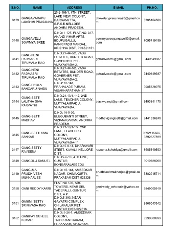 S.NO. NAME ADDRESS E-MAIL PH.NO.