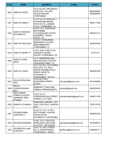 S.NO. NAME ADDRESS E-MAIL PH.NO.