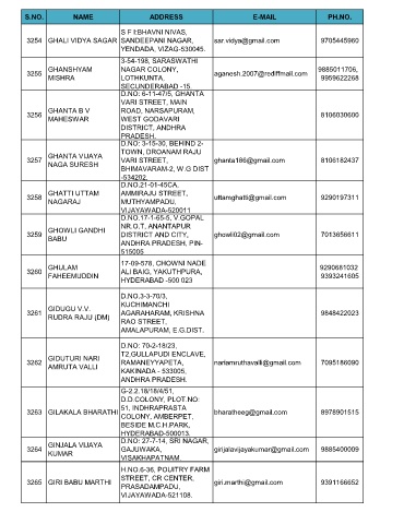 S.NO. NAME ADDRESS E-MAIL PH.NO.