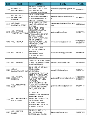 S.NO. NAME ADDRESS E-MAIL PH.NO.