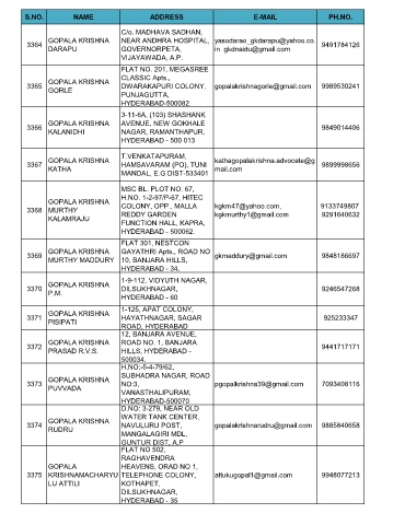 3365 DWARAKAPURI COLONY, gopalakrishnagorle@gmail.com 9989530241