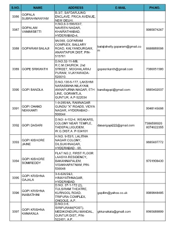 3390 GOPI BANDLA ANNAPURNA NAGAR, 5TH bandlagopi@gmail.com 9885402037