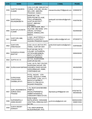 S.NO. NAME ADDRESS E-MAIL PH.NO.