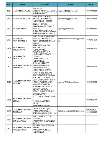 3621 HAMPI NAGA RAJU MANEKURTHI(V), ALUR(M), nagaraju196@gmail.com 9959739409