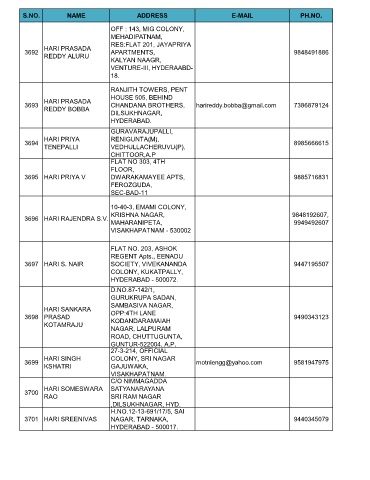 S.NO. NAME ADDRESS E-MAIL PH.NO.