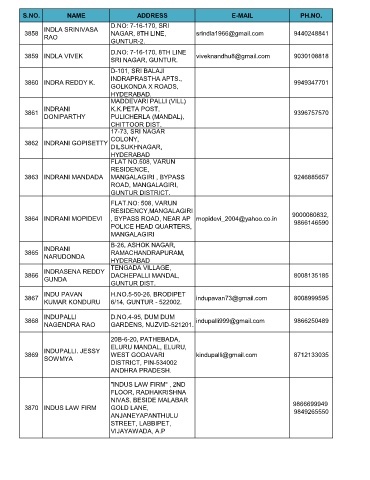 3864 INDRANI MOPIDEVI , BYPASS ROAD, NEAR AP mopidevi_2004@yahoo.co.in 9000080832,