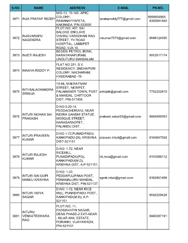S.NO. NAME ADDRESS E-MAIL PH.NO.
