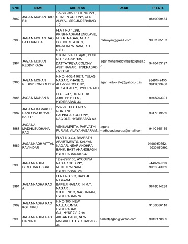 S.NO. NAME ADDRESS E-MAIL PH.NO.