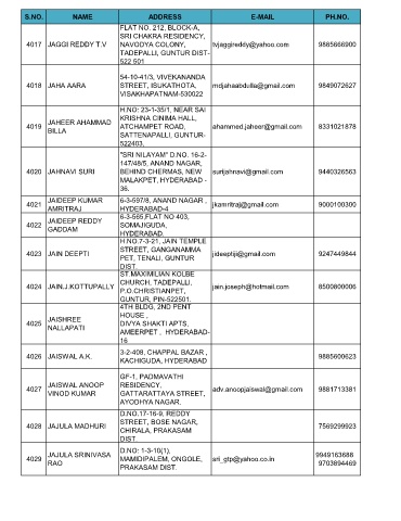 S.NO. NAME ADDRESS E-MAIL PH.NO.
