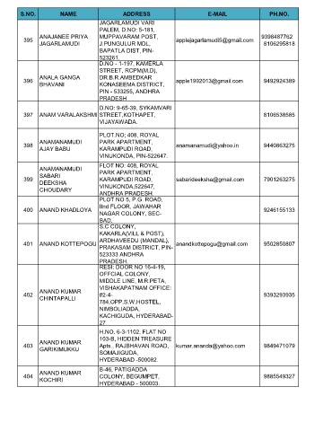 401 ANAND KOTTEPOGU anandkottepogu@gmail.com 9502850807
