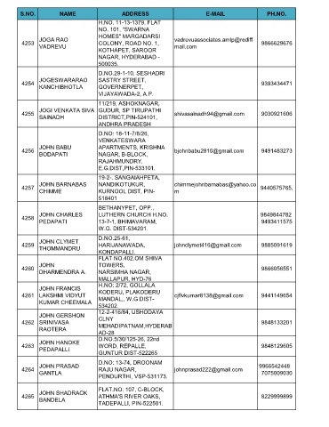 S.NO. NAME ADDRESS E-MAIL PH.NO.