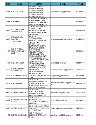 S.NO. NAME ADDRESS E-MAIL PH.NO.
