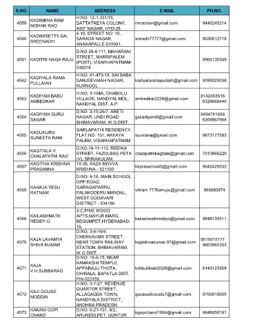 S.NO. NAME ADDRESS E-MAIL PH.NO.