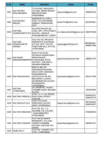 4659 KALYANI GUTTULA SRINIVASA COLONY kalyani.kavuri@yahoo.co.in 9885450357