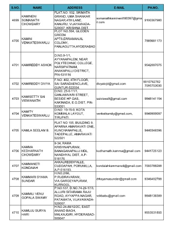 4702 KAMIREDDY DIVYA SAI SARADAENCLAVE, divyakrjd@gmail.com 9010762782
