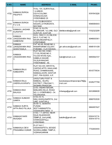 S.NO. NAME ADDRESS E-MAIL PH.NO.