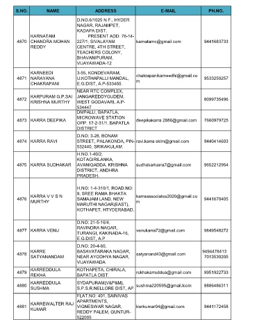 4875 KARRA SUDHAKAR AVANIGADDA, KRISHNA sudhakarkarra7@gmail.com 9652212954