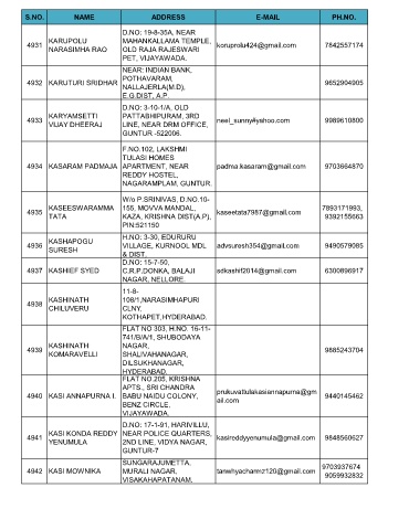 S.NO. NAME ADDRESS E-MAIL PH.NO.